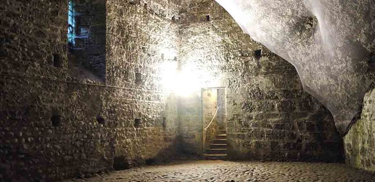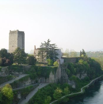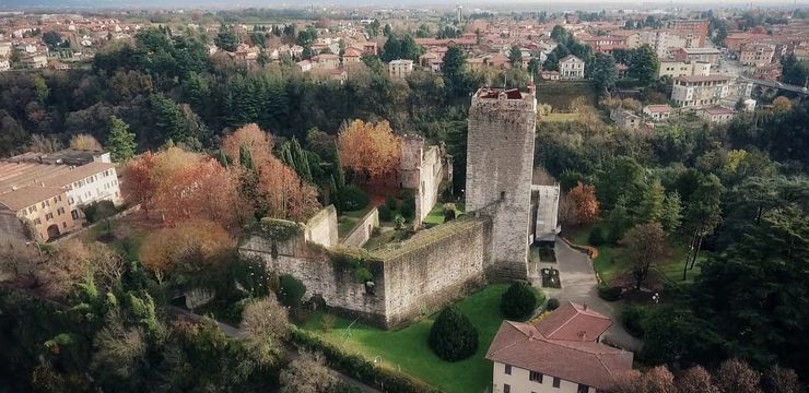 L'Adda si avvolge sinuoso attorno al promontorio di Trezzo, da sempre punto panoramico e di controllo del territorio. A partire dalla seconda metà del XIV secolo Bernabò Visconti, Signore di Milano, fa edificare il Castello sopra i ruderi di una precedente rocca costruita da Federico Barbarossa nel XII secolo. Quel che oggi si può osservare è solo una parte della poderosa fortezza: rimangono intatti i suggestivi sotterranei scavati parzialmente nella viva roccia, alcuni brani delle mura di difesa, la spettacolare torre alta 42 metri dalla quale si può godere di una vista a 360 gradi sulle prealpi e sulla pianura.