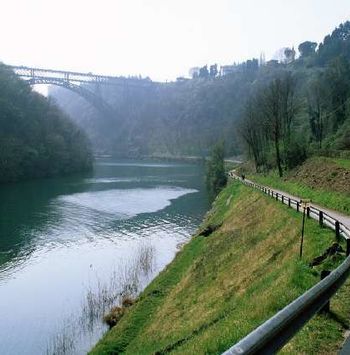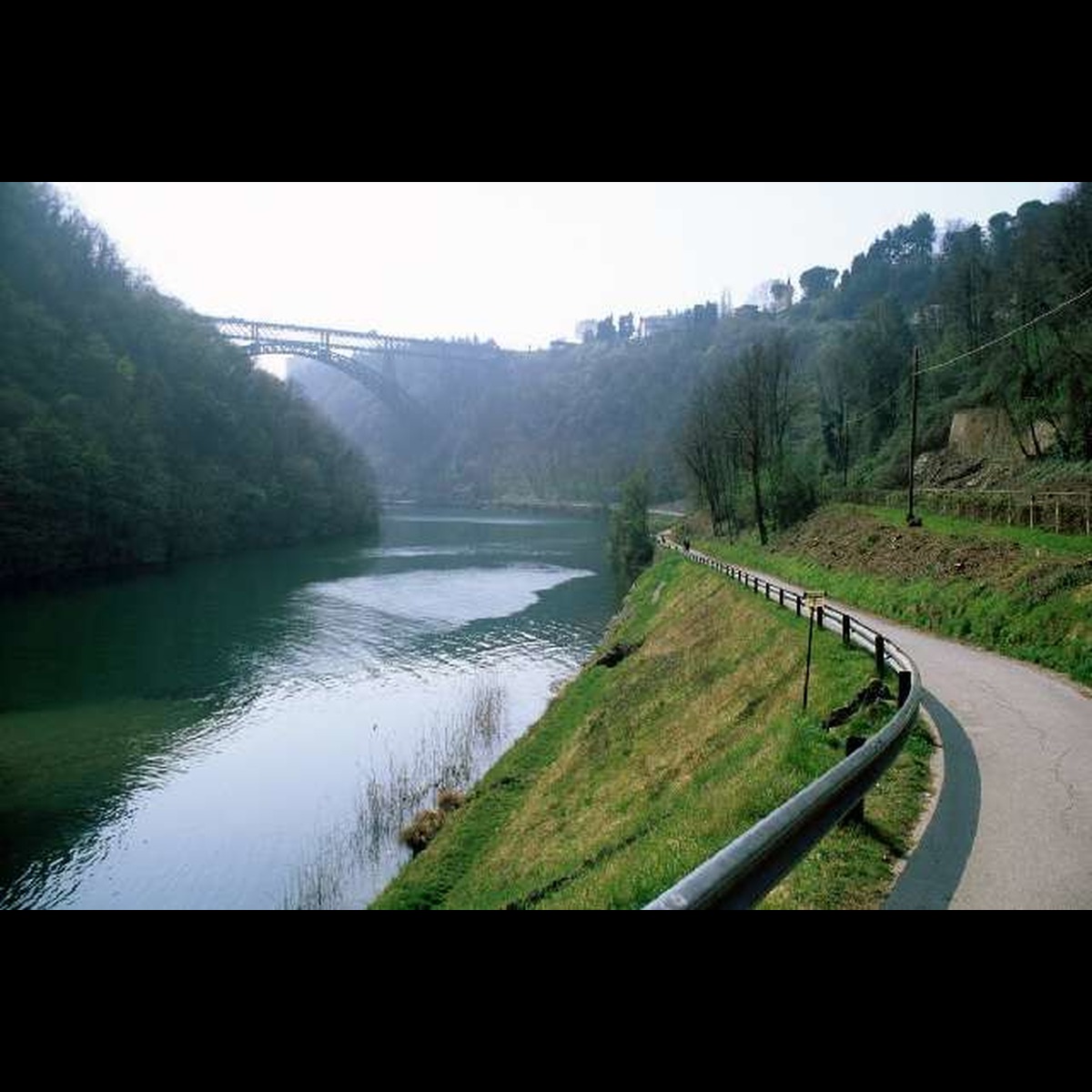 Il contesto naturale nel quale il ponte è inserito è piuttosto suggestivo: percorrendo la ciclabile ad esso sottostante si è circondati da una ricca vegetazione e il flusso dell'acqua è l'unico sottofondo udibile.