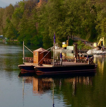 L'imbarcazione, disegnata da Leonardo da Vinci, è l'unica tutt'ora funzionante e il suo meccanismo, minuziosamente studiato, consente di spostarsi senza l'ausilio del motore, ma solo grazie al moto della corrente.